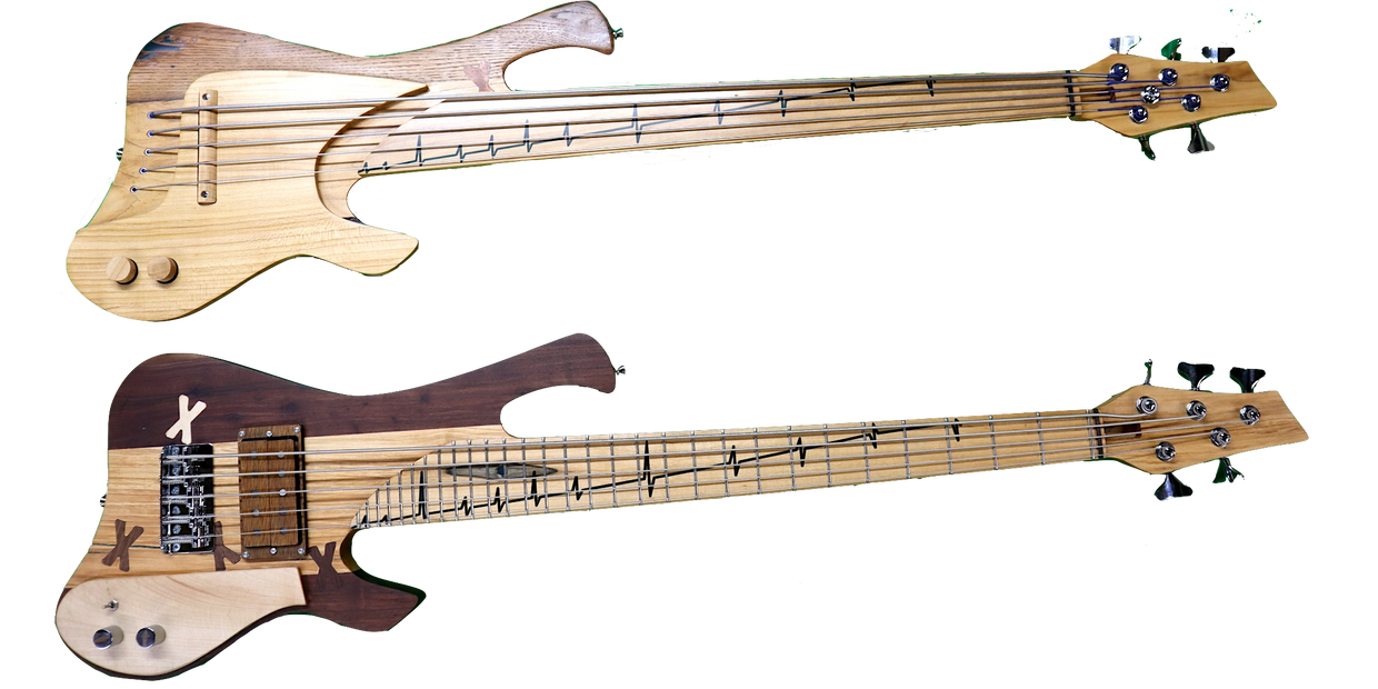 From its original "a piece of tree with strings" concept to the fully realized and versatile design of today, the Apeiron bass has become one of my most popular models. It has now been expanded for players seeking more than just a "fretless tree with strings" but still features the (probably overthought ) unique design.